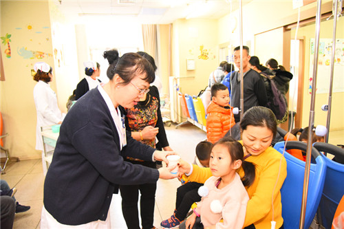 12月18日上午,集团门诊部组织导医护士为儿科候诊区等候的患儿和家属送来热水,为注射室的患儿和家属送上了热水和亲切的问候,温馨服务情暖寒冬,这也是门诊导医的一项优质护理服务举措。这获得了患儿家属和小朋友们的认可和好评。“这样的大冷天,能有一小杯热水端着,不仅手里热乎,心里更热乎,为海慈的医护人员点赞!”现场的家长们对导医护士的温馨服务纷纷竖起大拇指。