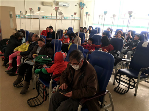 这种忙碌从11月上旬就开始了,门诊天天人满为患,病房一床难求。“我们每天六个患儿出院,六个患儿入院,医生要马不停蹄地问诊、治疗、写病历。每天来预约住院的有30多个,肺炎患儿都住不上院,只能在门诊治疗,仅有的床位要收治病情更重的孩子。”张瑞云说。