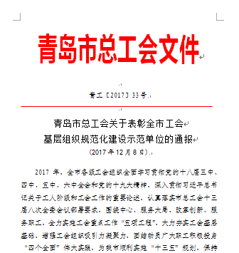 为进一步提升中心工会工作水平,按照市总工会《关于加强工会基层组织建设三年行动计划(2015-2017年)》的要求,中心大力加强工会基层组织规范化建设,在市总检查验收中脱颖而出,荣获全市“基层工会规范化建设十佳标兵单位”。