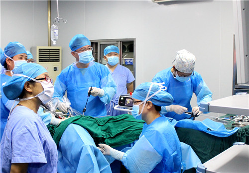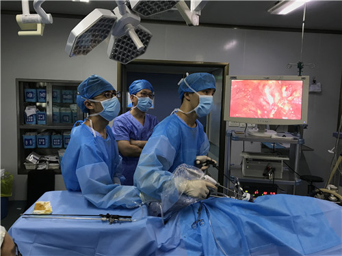 泌尿外科中心主任侯四川(中)指导安顺市人民医院医生开展手术