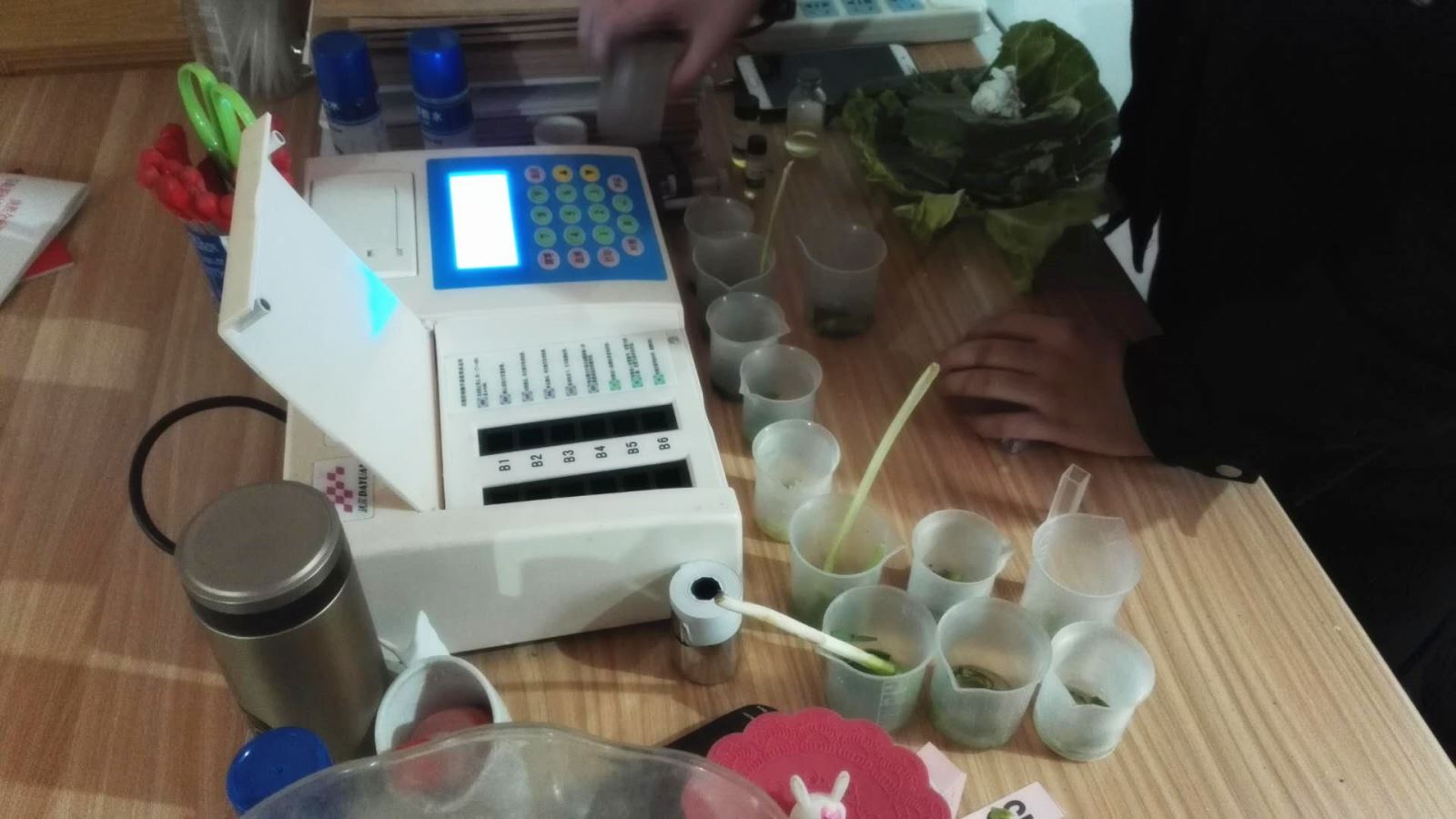 执法人员在市场管理办公室,利用统一配备的快检设备,利用一个多小时对上述送检的蔬菜进行了快检,快检结果显示被检测样品农药残留均符合检测标准。随后,执法人员把快检结果在市场的公示栏内进行现场公示,以便于群众及时了解此次“你送我检”的检测情况,保障大家“购的明白、吃的放心”。