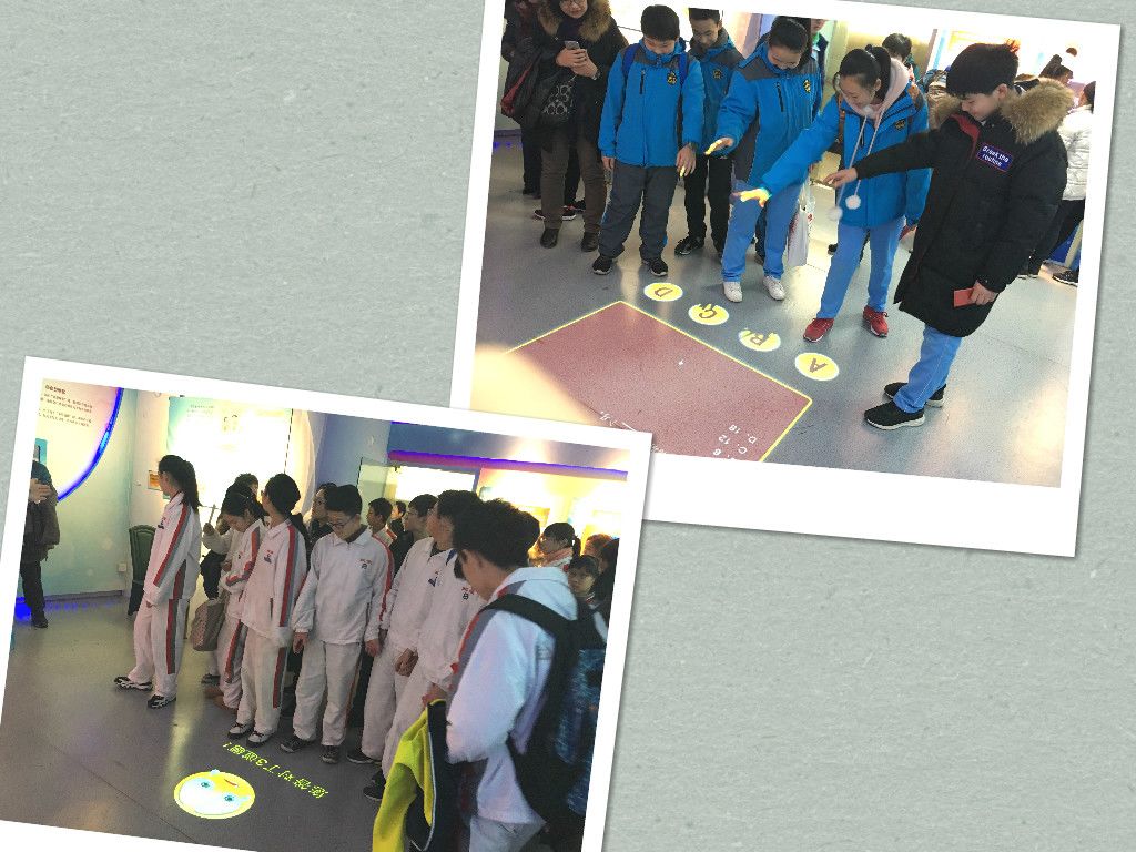 还有的学生们通过刚才在前面展厅听过学过的知识在努力地做着地投小游戏。
