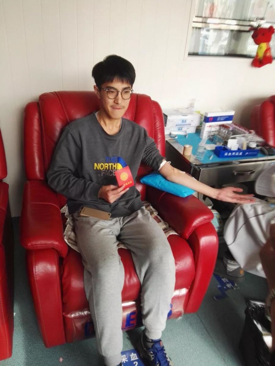 郭芝强是一位个体经营者,同时也是一位非常热心的爱心志愿者,是即墨无偿献血爱心联盟群里的活跃分子。2017年6.14世界献血者日,他曾组织自己的爱心团队献血50人次。在血站工作的一线员工对他印象都很深刻,因为他是2011至2012年度全国无偿献血奉献奖银奖的获得者,即墨爱心献血车和献血屋30多次出现过他献血的身影。他自2002年4月26日开始献血至今已献血34次,累计献全血13600毫升。作为一名无偿献血志愿者,他喜欢到爱心献血屋参加无偿献血志愿服务,至今已累计200多小时,他的朋友大都在他的影响下参加无偿献血,成为一名固定的献血者。昨天上高三的儿子18岁的生日,父子俩便商议一起献血,为自己的生日奉献不一样的礼物,经填表、体检、化验后,儿子成功捐献300毫升全血,而他则还是400毫升。