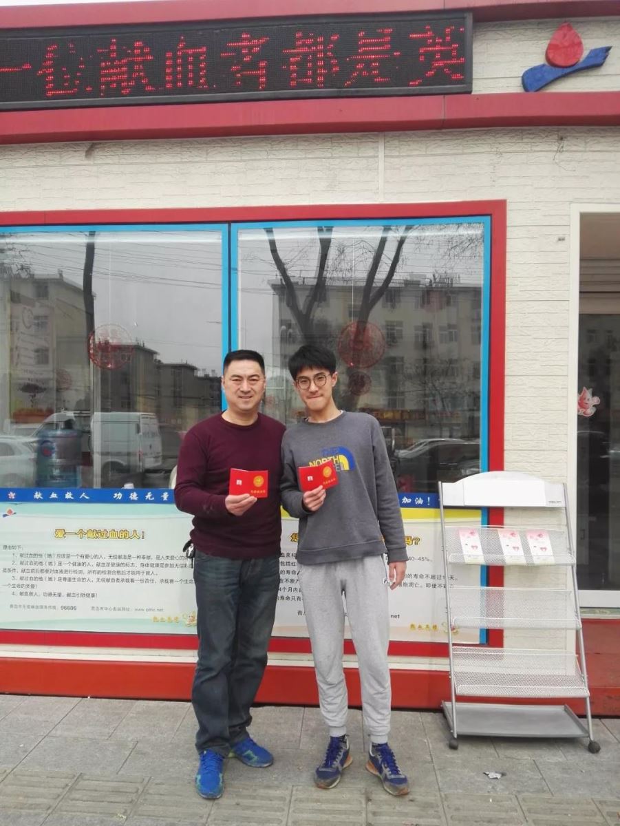 2月14日,即墨爱心献血者郭芝强再次来到即墨利群爱心献血屋献血,与以往不同的是,今天是情人节,也是他的生日,更是儿子刚满十八岁的日子。他和儿子一起来,为的是让昨天刚满18周岁的儿子和他一起在情人节这样特殊的日子里一起献血,感受奉献爱心的意义,帮助孩子建立积极向上、助人为乐、富有大爱的人生观。