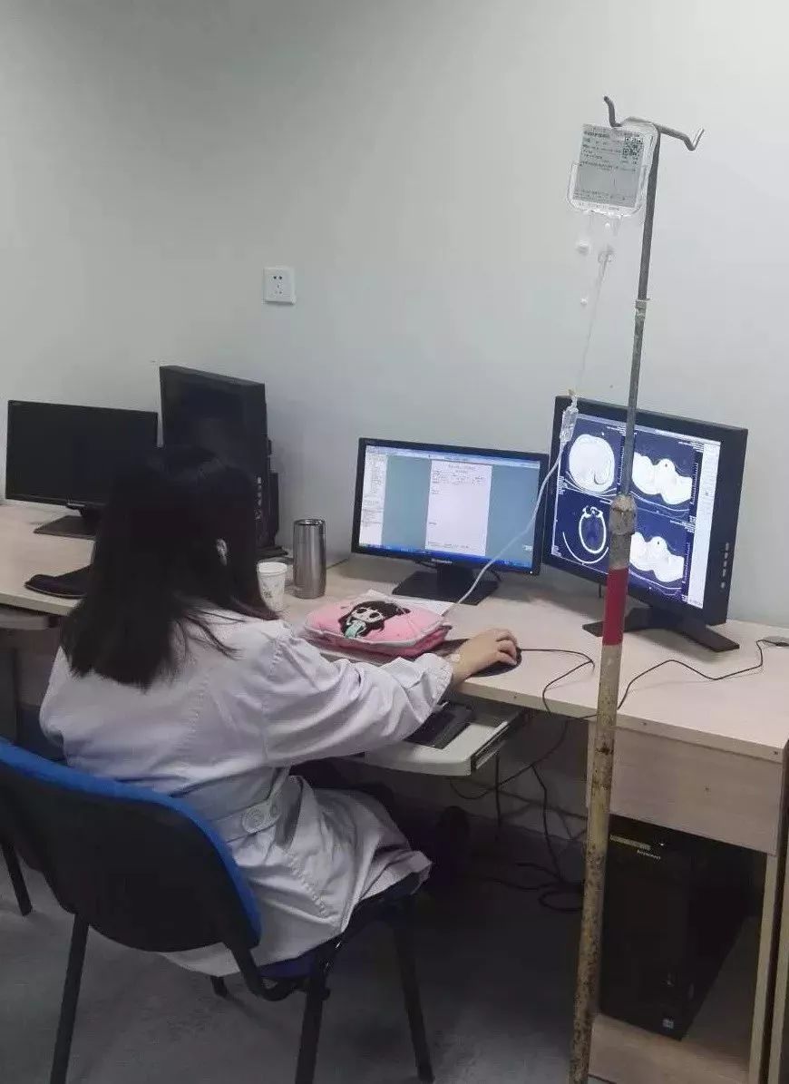 于是,胡风仙便同往常值班一样,准时来到医院,为一个又一个的患者安排CT检查。正月初四同往常一样的忙碌,当日中午,胡风仙就赶紧跑出去输上液,然后自己拎着“吊瓶”回到办公室继续工作。 “其实这种情况在医院里是再正常不过的事情,况且放射科本来就是一个比较忙碌的科室,许多医生诊断病情都需要看拍的片子才能确定,如果你请假了,那可能许多人都会受到影响。所以对于我们来说,一般都是能坚持就坚持。”
