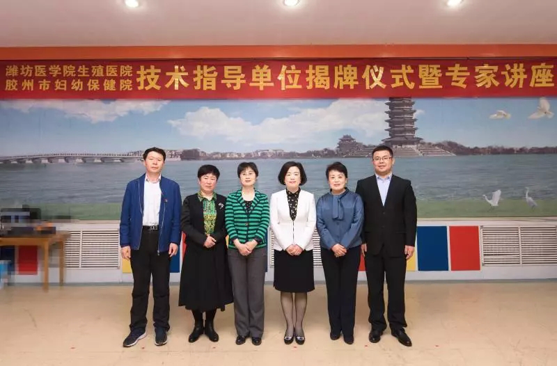 随后,胶州市人大常委会副主任姜青华与潍坊医学院生殖医院院长任春娥共同为潍坊医学院生殖医院技术指导单位揭牌。