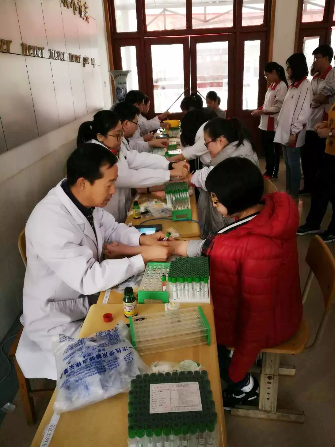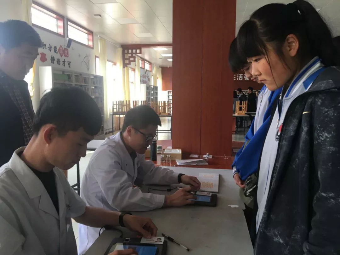 与传统体检方式相比,此次体检工作突显“人性化、无纸化、简便化”的三大亮点。一是人性化服务。胶州市人民医院选派出23名查体医护人员采取上门服务的方式,为高考学生开展校园内采血,避免了考生因长时间空腹造成的低血糖,也为考生节省了备考时间。二是无纸化录入。无纸化体检由医生将每项查体数据直接录入智能体检系统,降低了传统体检由人工书写带来的错误率,体检医生可实时查看体检进度、漏检项目和漏检学生。同时,每项体检项目都需考生提供二代身份证进行信息智能读取,有效防止了替检现象的发生。三是流程简便化。降低了招考办和学校的查体工作量,避免了纸质查体单数据采集问题,优化了工作流程。学校和招考办也可通过智能体检系统及时、全面地掌握考生的身体情况,既可进行个体化的健康指导。