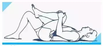 牵拉一侧膝关节直至感觉到下腰部及臀部适度的牵伸,另侧膝关节重复相同动作。