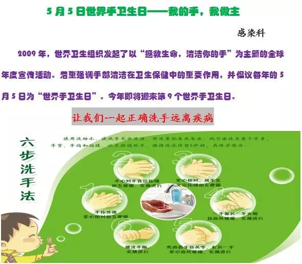 2018年5月5日是第十个“世界手卫生日”。据统计,日常生活中,人的一只手上可附着的细菌达40多万个,在身体抵抗力下降的时候,就容易诱发各种疾病。