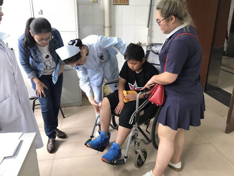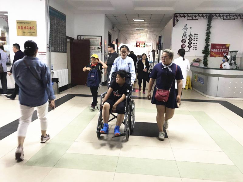 细心地王文霞护士长为他推来了轮椅并拨通了家长和老师的电话