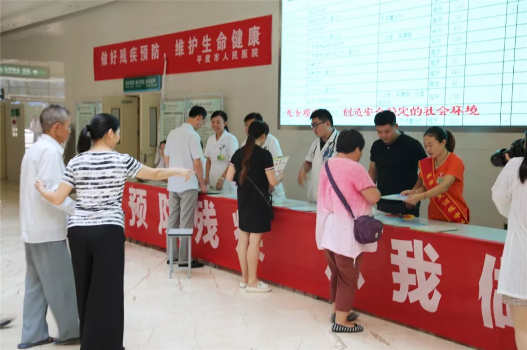 2018年8月25日是第二次全国残疾预防日。为进一步增强全社会残疾预防意识,推动残疾预防事业发展,8月25日上午,在平度市残联的统一组织下,我院医务科、康复科、护理部、宣传科联合在新门诊楼门诊大厅开展“残疾预防日”主题宣传义诊活动。