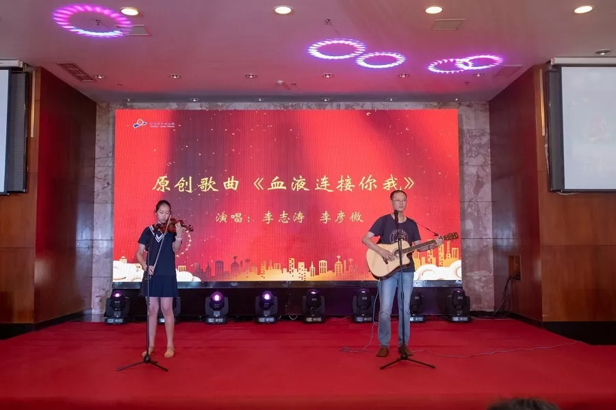 血液连接你我,裹着跳动的心,带着体温,点亮生命;血液连接你我,为他人着想,捐献热血,分享生命.....”优雅的小提琴、激昂高亢的歌声萦绕在耳边,青岛市中心血站的职工正在满怀深情的用歌声来表达对中心血站和无偿献血事业的热爱,庆祝青岛市中心血站建站25周年。