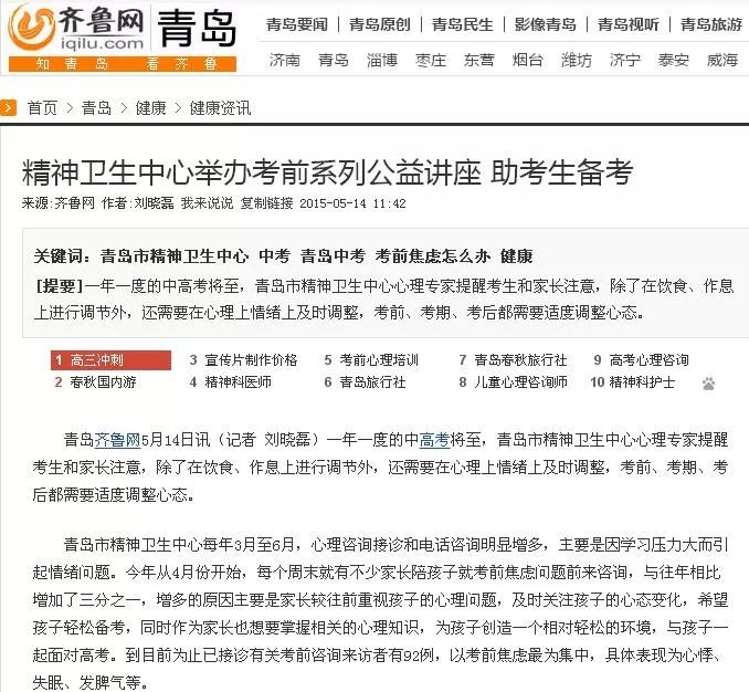 △2007年11月,成立青岛市心理健康教育基地