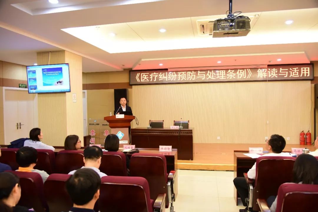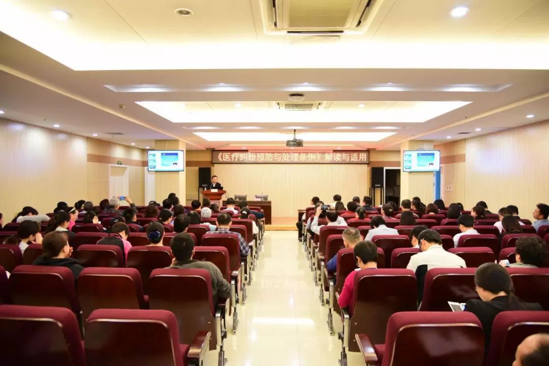 此外,张新博教授还对《条例》中新规定的一些细节问题进行了解读,并指出“医院第二组织运行体系建设”是防范纠纷的重要途径。张教授旁征博引、深入简出的讲解方式,深受医院职工欢迎,并对新《条例》有了更深刻的认识。