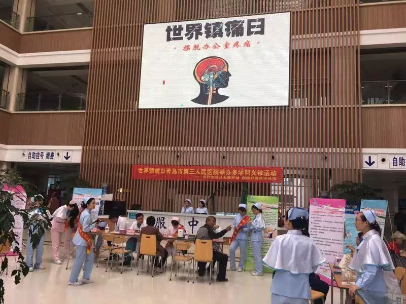 今天是中国镇痛周的第一天,青岛市第三人民医院疼痛护理委员会联合各疼痛管理相关科室,包括麻醉科、针灸科、神经康复科、肿瘤科、骨科、心内科、药学部等,举行多学科义诊活动,以今年的世界镇痛日主题——“摆脱办公室疼痛”为切入点,向公众普及宣传世界镇痛日,科普传统与现代的镇痛技术和疼痛知识健康宣教。