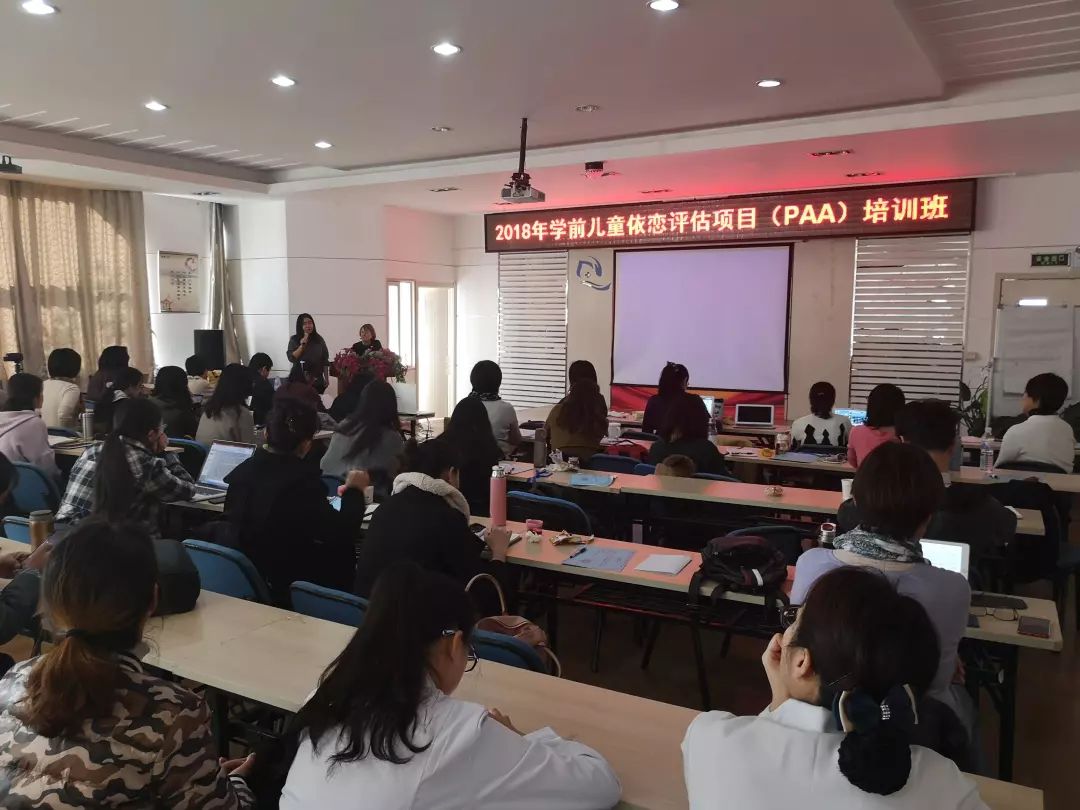 为进一步带动半岛地区心理治疗技术水平,促进中心临床心理学科的不断发展,保障儿童心理健康, 2018年11月9日-16日,中心与上海同济大学儿童青少年心理发展中心联合举办全国学前儿童依恋评估项目(PAA)培训班,由Patricia McKinsey Crittenden教授担任授课,曹萌韵担任翻译。来自北京、上海、青岛、天津等15个地区的心理治疗工作者及心理咨询爱好者,以及青岛市精神卫生质控中心所属县级精神卫生机构骨干医师、住院医师规范化培训学员和本院职工,共计80余人次参加了此次培训班。