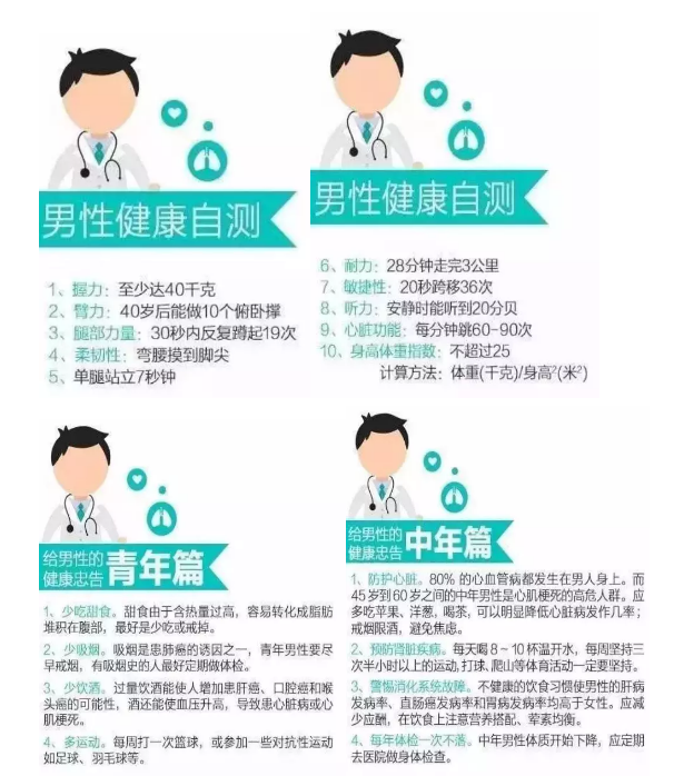 这组数据并非危言耸听,每个数据的背后都透露出日益严峻的男性健康问题。世界卫生组织确定每年的10月28日为"世界男性健康日",今年的主题是:“健康等于财富,体恤男性生活”。