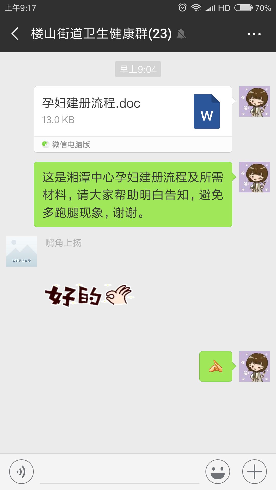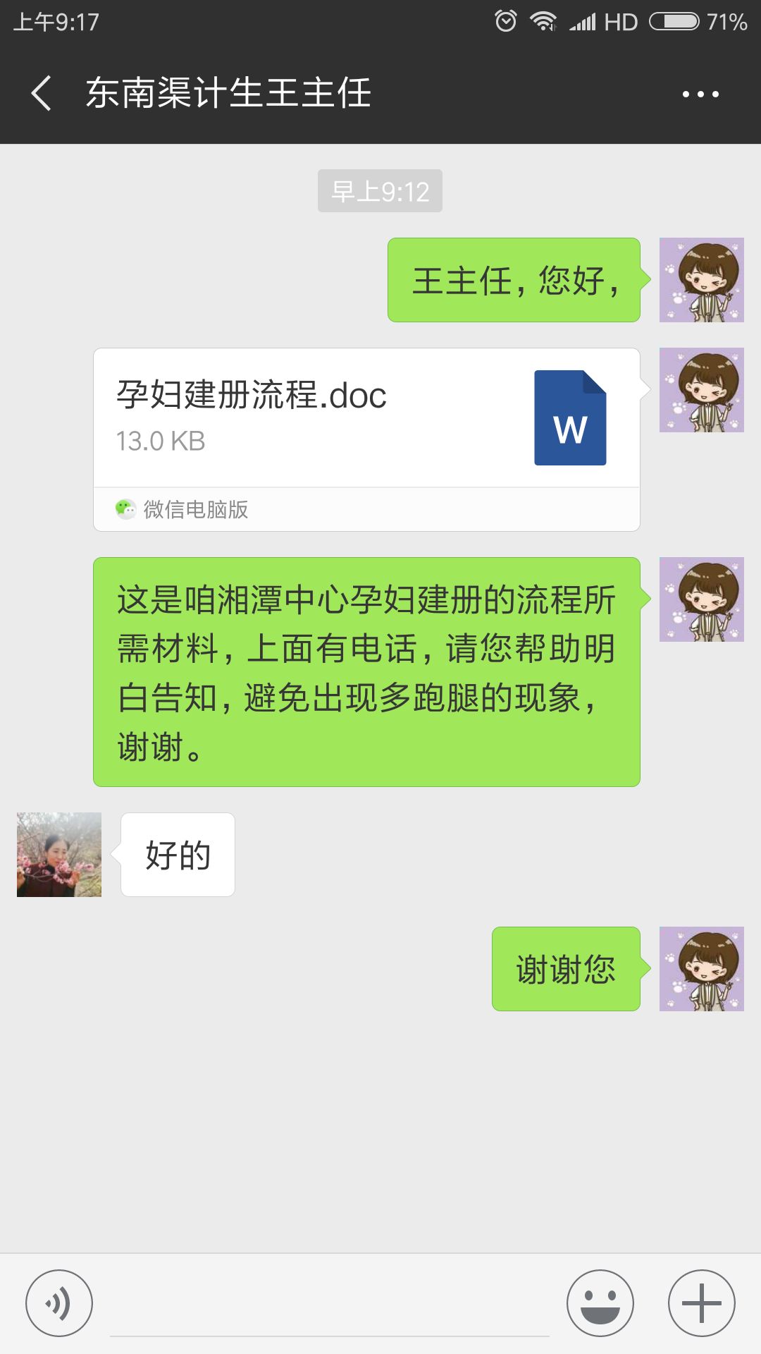 近期,通过前来建册的孕妇和各种电话咨询,发现部分孕妇对建册流程不是很清楚。为进一步完善服务,妇保科调整部分服务细节,并马上与相关计生部门沟通,请其协助告知宣传孕妇建册流程及所需材料,避免孕妇多跑腿。