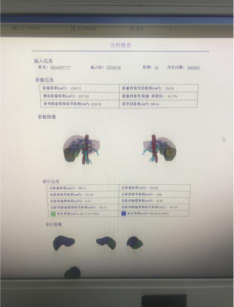 因为患者病史时间久,手术风险高,难度大,术前借助EDDA人工智能系统,虚拟肝脏手术切割模拟操作和残肝体积测量,观察模拟切除后残留肝脏的管道结构的完整性。