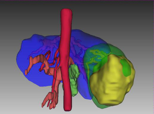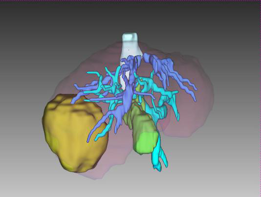 有研究显示,术前运用三维重建系统(IQQA-Liver精准手术规划平台)评估肝癌切除体积和切缘,其所重建的图像准确、清晰、直观,模拟结果和实际结果差异不大,在肝癌切除术前能准确了解肿瘤位置,肿瘤与周围的毗邻关系及肝胆管道的走行,在制定手术规划、减少术后并发症等方面具有一定的辅助作用。