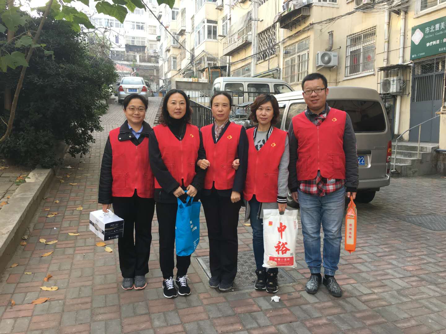 11月22日,门诊医技党支部的志愿者罗青、李卫东、张莉、张雪、卢震坤与支部书记柳淑琴一道,带着大米,面粉,牛奶等生活用品,前往爱心陪伴结对的市北区阜新路街道南山社区张本从大爷家中,看望老人家。