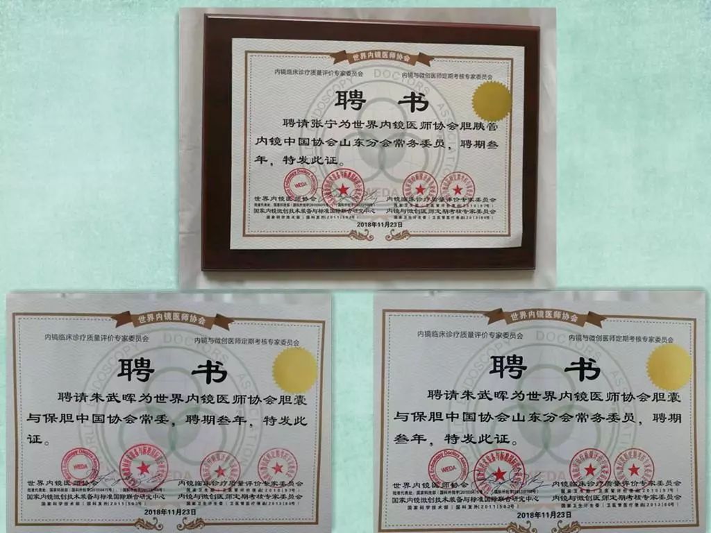 聘请朱武晖为世界内镜医师协会胆囊与保胆中国协会山东分会常委委员。