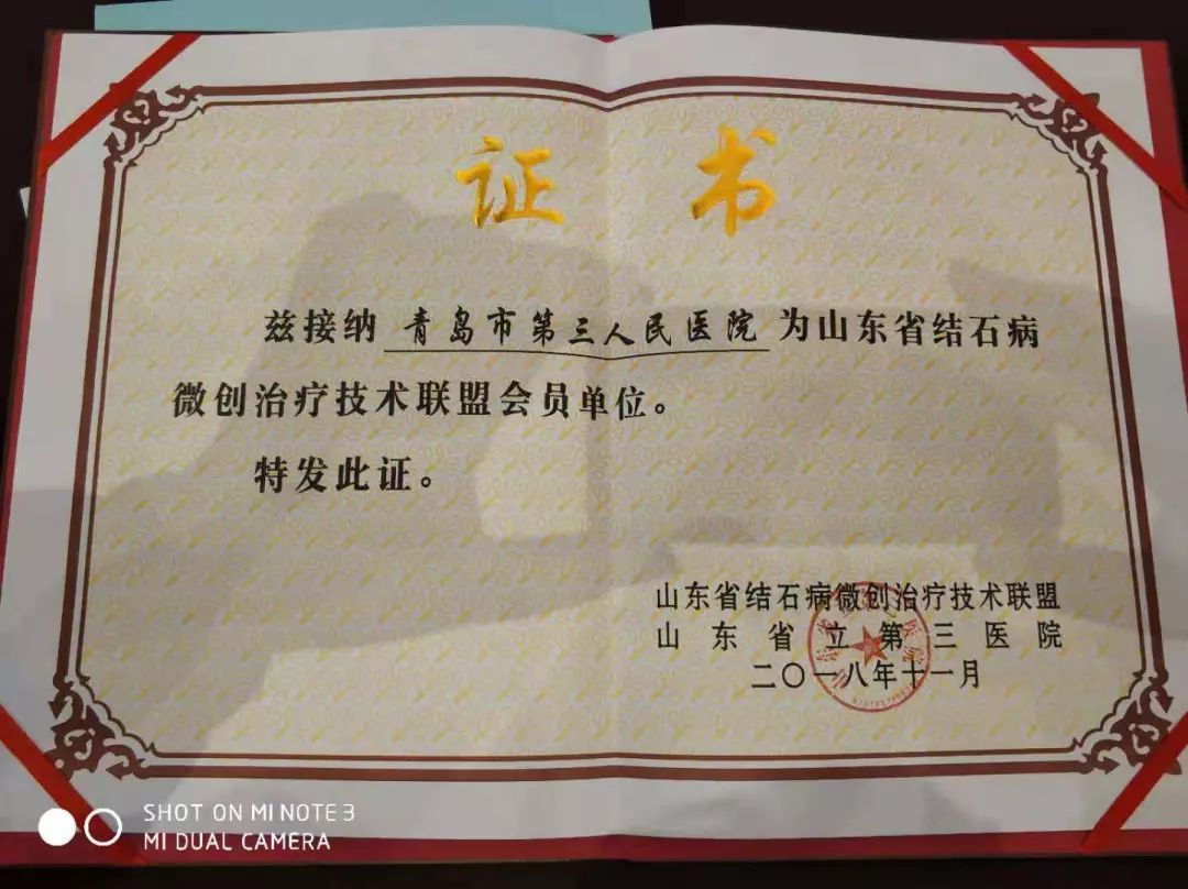 青岛市第三人民医院成为山东省结石病微创治疗技术联盟会员单位。