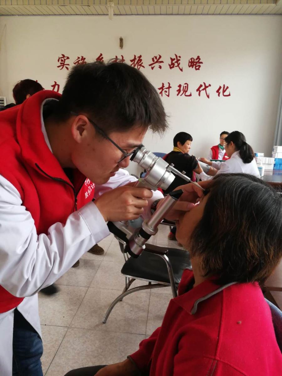 在村委大院,前来咨询、问诊的村民络绎不绝。人民医院的医务人员认真地为他们测血压、查心电图、进行眼科专项检查等,细致地为他们解释检查结果、身体状况,耐心地为村民答疑解惑,仔细地讲解常见疾病的预防保健知识,并在现场为2位有手术指征的白内障患者预约安排免费的白内障复明手术。