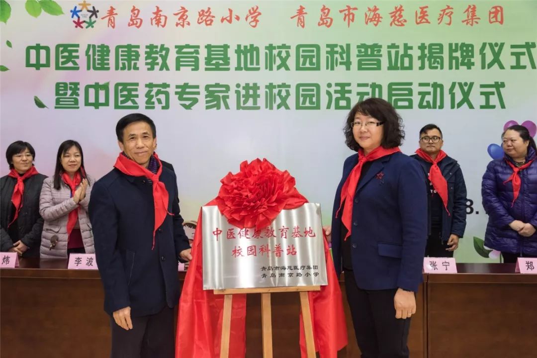 为做好全国文明城市和文明单位创建工作,在国际志愿者日来临之际,12月4日下午,青岛市海慈医疗集团和青岛南京路校园联合举办了“中医健康教育基地校园科普站”揭牌仪式暨中医药专家进校园活动启动仪式。集团党委赵军绩书记、市南区教体局卢雪梅副局长及南京路小学位华校长等领导出席仪式,并为科普站揭牌。