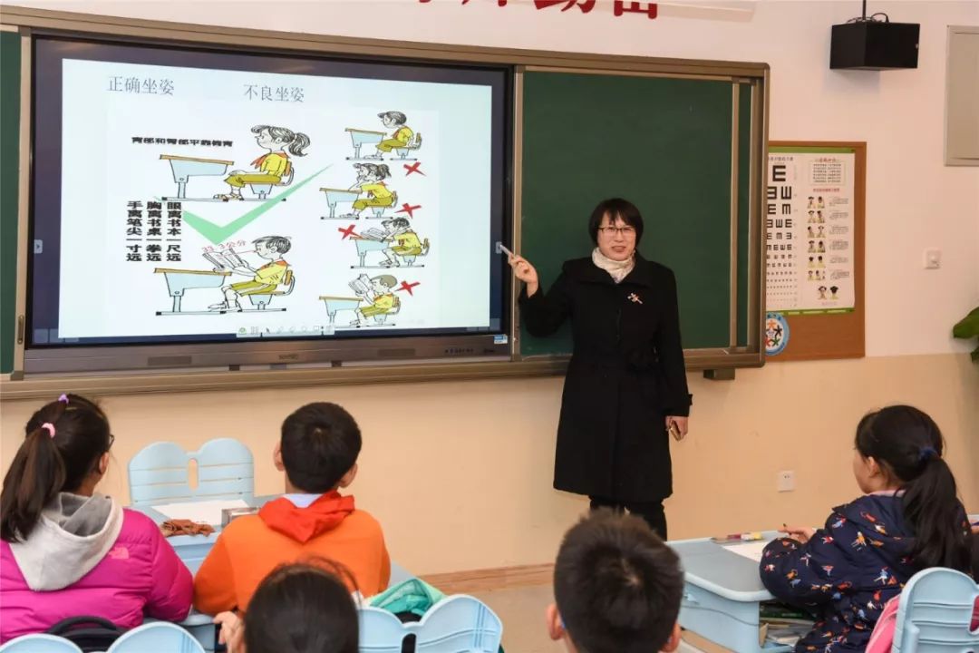 在五年级五班教室里面,我们看到治未病科的曲宪双副主任医师正在以《正直的人生——脊柱保健》为题,为同学们讲授脊柱保健的相关知识,告诉同学们学习时候要特别注意正确的坐姿,防止患上颈椎及脊柱类疾病。