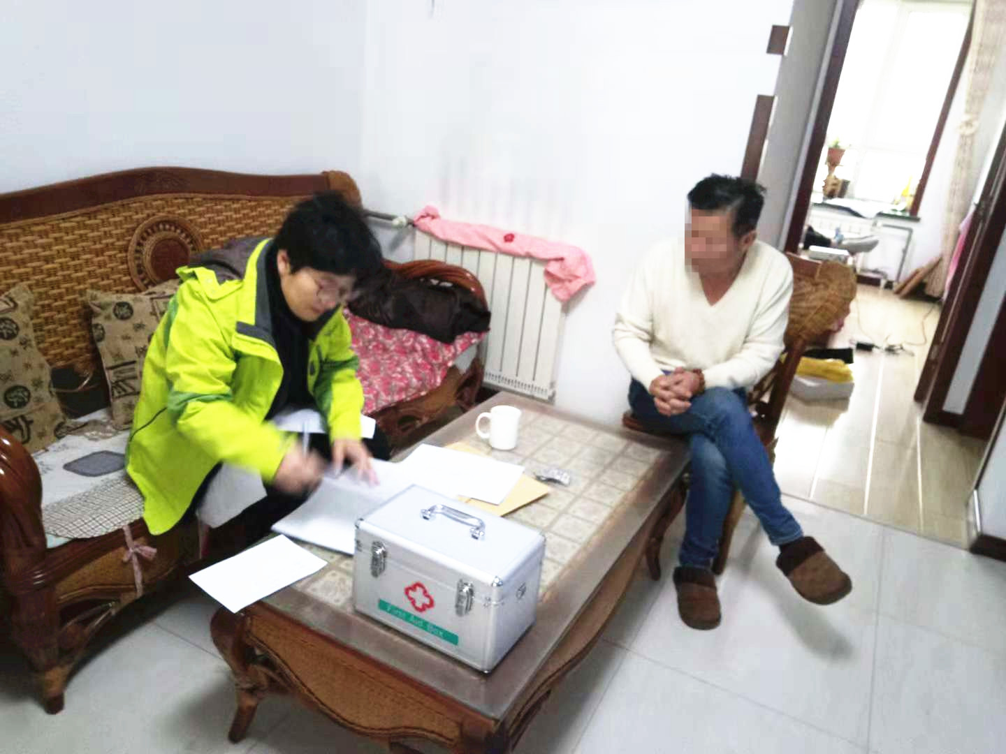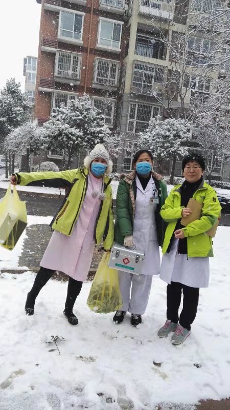 今天早晨,寒风凛凛,天空中还飘着雪花,湘潭路社区卫生服务中心第三家庭医生团队背着医药箱,整装待发,一起来到签约居民家中,为居民进行体检。