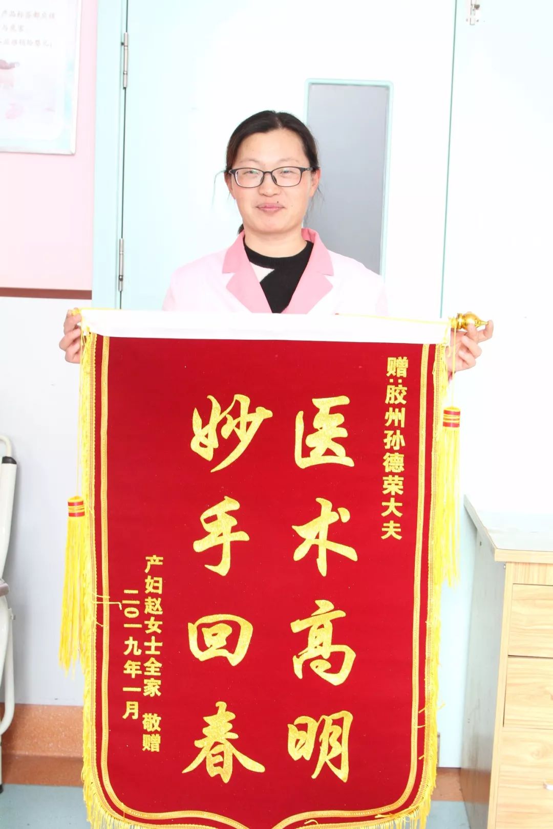 事情过去10多天了,产妇和新生儿恢复良好,看着医护人员和蔼可亲的面容和充满活力的宝宝,赵女士感慨万千,于是让老公赶制了两面锦旗,在出院那天送给孙德荣大夫和产科护士。