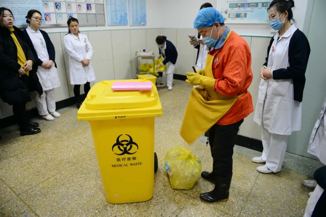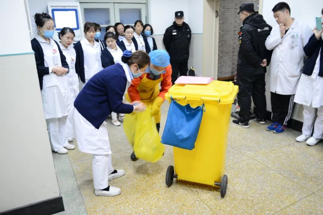 为提升“感•动先锋”品牌内涵,进一步提高医务人员对医疗废物遗失、泄漏、扩散等突发事件的防控应急处置能力,1月23日下午,中心开展了医疗废物流失、泄漏意外事件应急演练。中心周晶副院长及各临床科室护士长、感控护士、后勤、安保、医疗废物回收专职保洁人员等科室相关人员参加了此次演练。