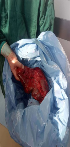【图3、4】巨脾标本、脾静脉瘤样异常扩张