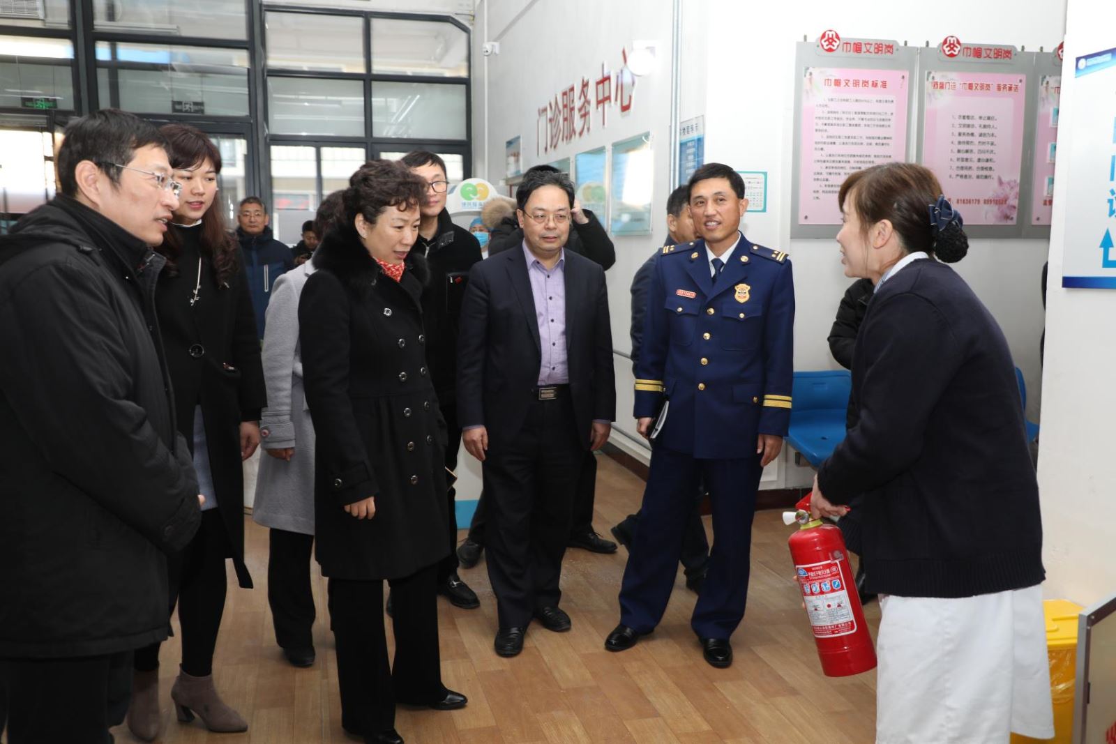 栾新副市长认真听取了医院党政负责人关于安全生产、安全隐患治理的情况汇报,实地查看了医院临建门诊楼的消防设备设施、安全通道等,医院工作人员进行了消防器材的现场演示,栾市长一行对其熟练操作表示满意,对医院的消防培训工作给予了充分肯定。