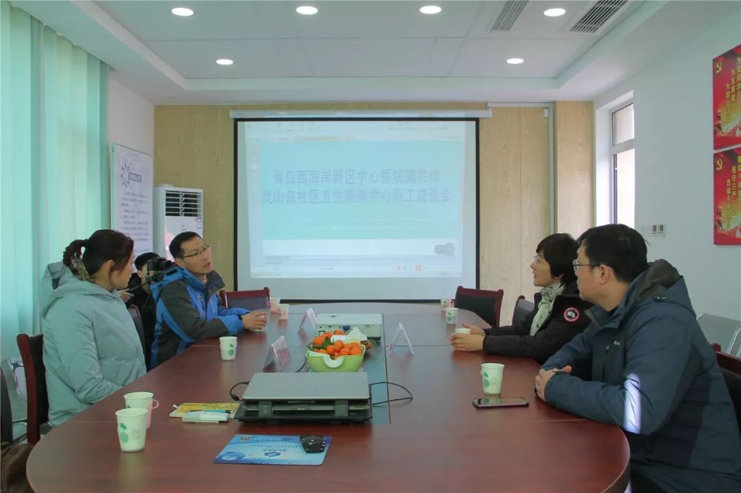 2019年1月17日上午,西海岸新区中心医院一行10余人,共赴灵山岛社区卫生服务中心参加健共体揭牌仪式,灵山岛自然保护区公共卫生与计划生育办公室袁静主任同行参加活动。