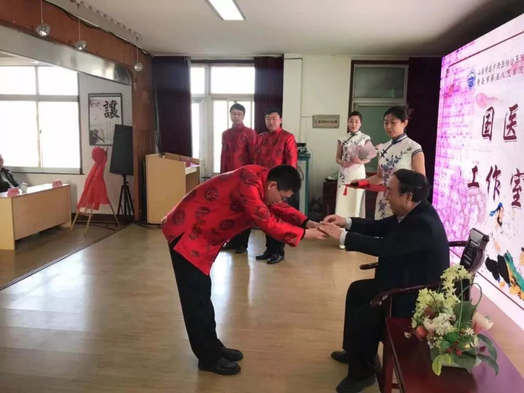 根据青岛市创建国家中医药综合改革试验区“十百千万”工程的相关要求,引进类知名中医专家工作室是传承名老中医专家学术思想和临床经验、培养中医药人才的重要载体,是推动名老中医学术经验传承,培养高层次人才的重要平台。我院以此为契机,为李佃贵教授配选了三名品学兼优、勤奋踏实的临床技术骨干为继承人,分别是我院国家中医药管理局重点专科胆石科主任赵茗和胆石科医生密亚琦、肾病科主任王京祥,并举行拜师仪式。