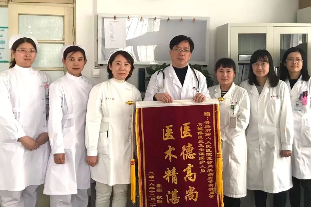 年近九旬的王先生(化名)是抗美援朝老英雄,一个月前因脑梗死、肺内感染及下肢丹毒并持续高烧不退住院治疗。于主任带领团队根据老人的以往病史和现状,量身制定了一套科学、严谨、规范的个性化治疗护理、康复方案。经全科医护人员的共同努力,一周后,老人的病情不仅大有好转,而且心情更加舒畅,向医护人员讲起了一段段抗战往事,让大家顿时穿越时空,回到了硝烟弥漫、烽火连天的鸭绿江战场……王先生深受大家的敬重。老人的儿子将锦旗送到医生办公室时潸然泪下地说:“不是亲人胜似亲人,医护人员的所作所为,令我们四代人感激不尽……”主管医师刁建倬说:“老人是抗美援朝的英雄,是我们学习的楷模,在这个崇尚英雄的时代,更加激励着我们不忘初心、牢记使命……”