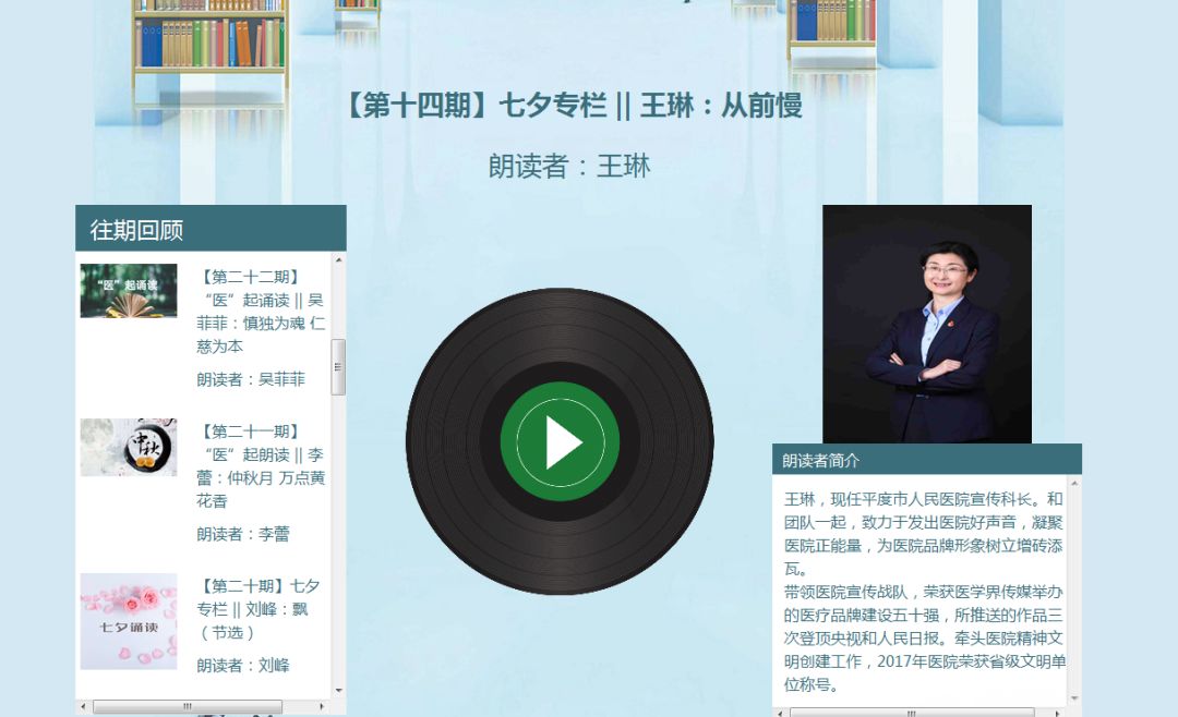打造有声音频“七夕诵读”“医起朗读”等专栏