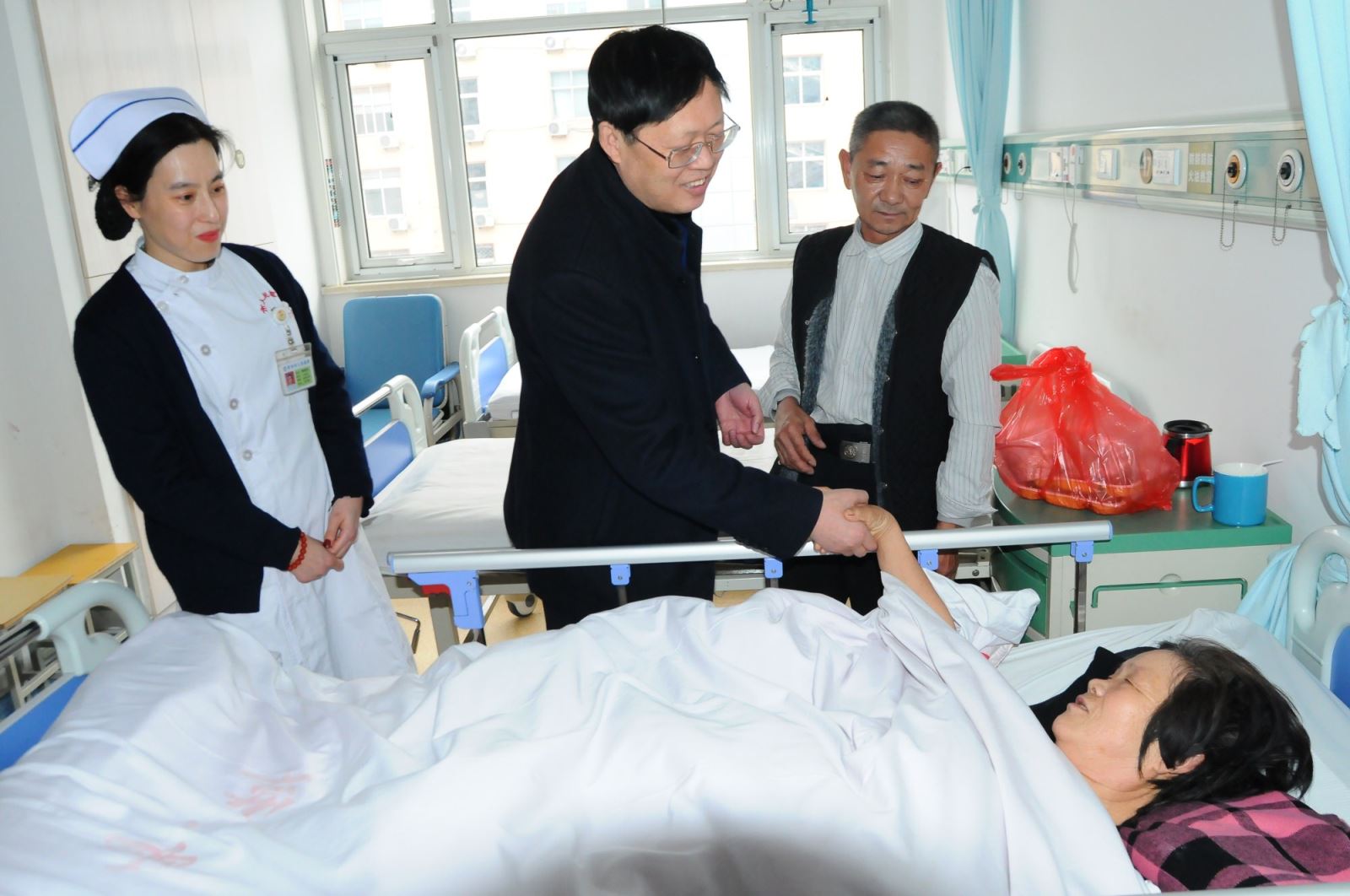 在骨一科六病室,张院长仔细询问患者的病情并给他们拜年。16床患者接过热气腾腾的年夜饭,感动的说:“没想到在除夕医院领导还能来看望大家,想着给我们送年夜饭,我这辈子都忘不了这顿不同寻常的年夜饭。”