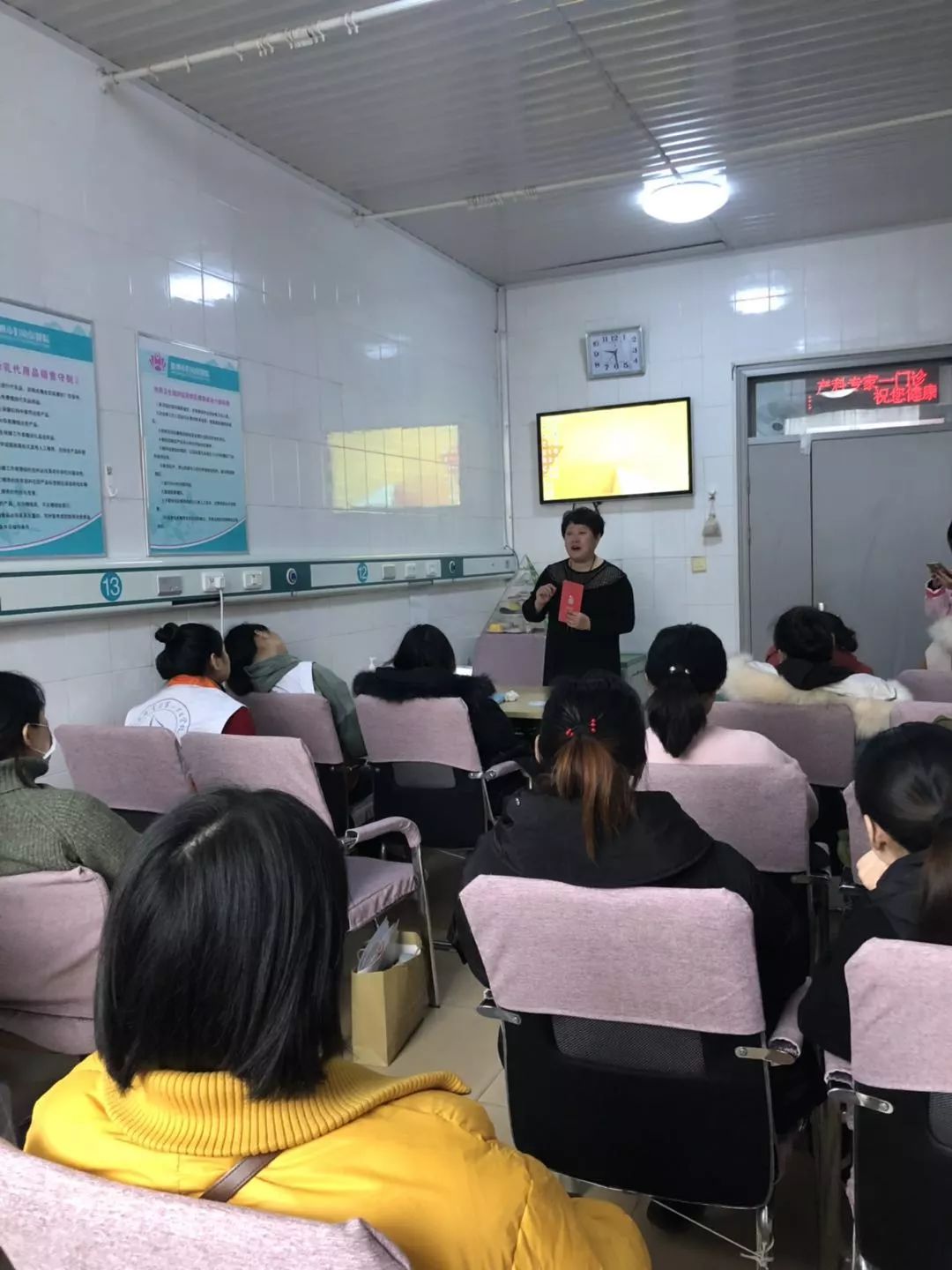 1月30日一大早,我院迎新春孕妈课堂如期举行,准爸妈们不顾严寒准时来到孕妇学校。首先由孕妇学校的授课老师匡成成给准爸妈们带来了产褥期的保健知识,匡成成分别从孕妈妈在怀孕期间身体的各系统变化和如何科学坐月子等方面进行讲解,课上各位孕妈踊跃提问发言,匡成成也为大家一一解答,通过系统科学的指导,纠正了一些传统坐月子的陋习,让准爸妈们掌握了科学坐月子的要点。