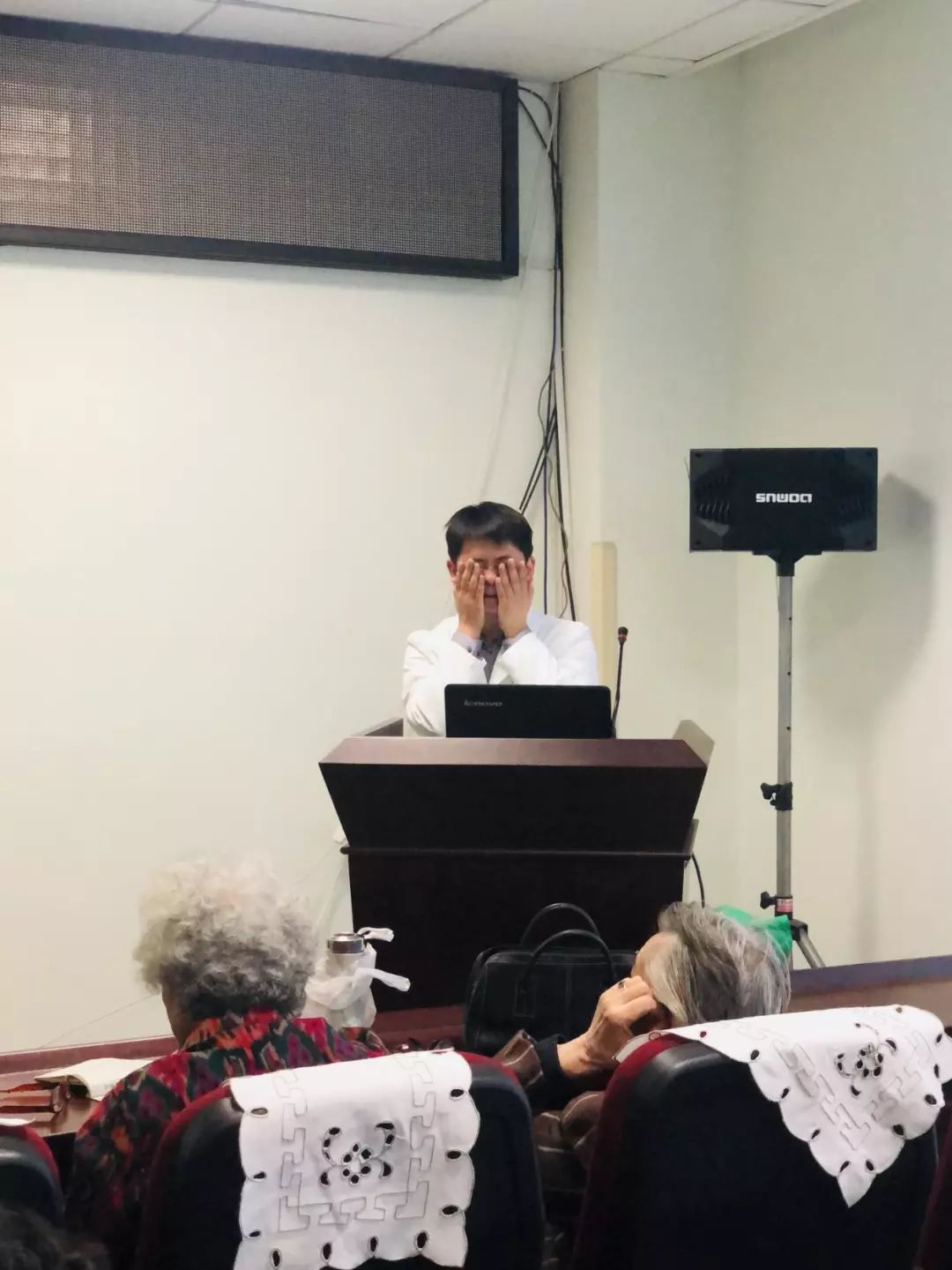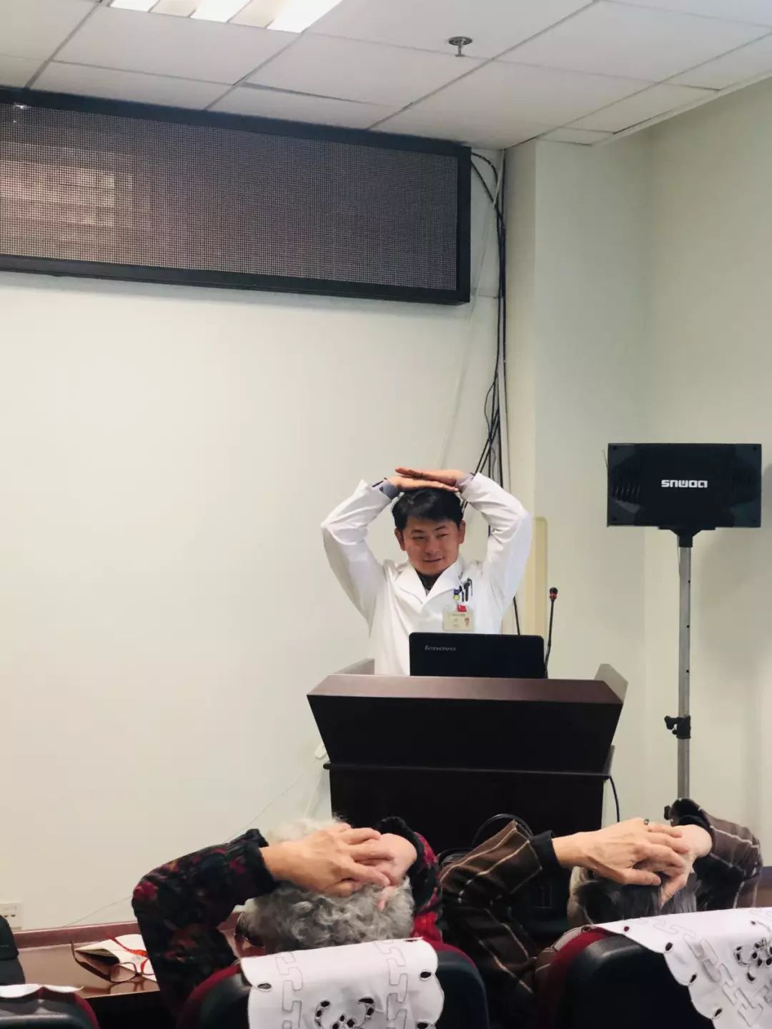 近日,特邀请医院中医科马照琳主任深入浅出的对“春季老年人应该注意的问题”、“怎样进行日常养生”、“平日吃什么才能起到良好养生效果”等老同志关注的知识进行了详细的讲解,并现场演示了部分日常养生的操作手法、解疑答惑了老同志提出的问题。他结合临床生动形象的讲课,得到与会老同志们的热烈欢迎,纷纷表示等夏天到来之时,还要继续听他讲解“夏季养生方法”。