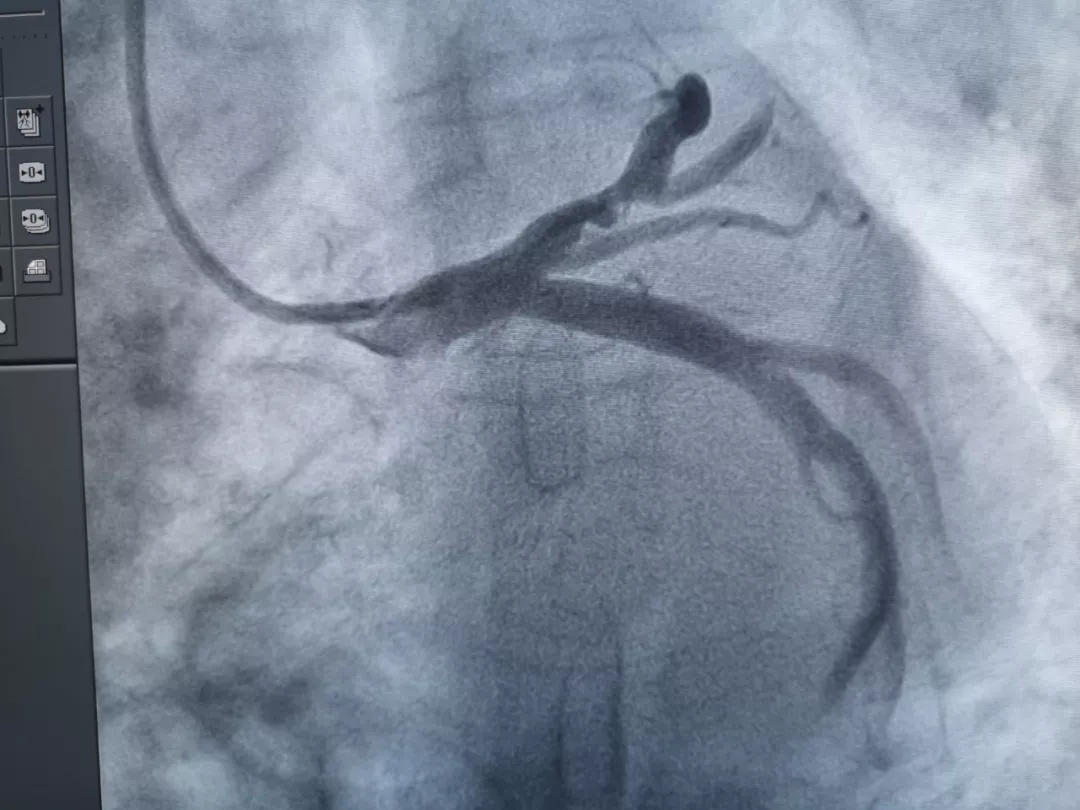 69岁的张大妈因冠心病来到青岛西海岸新区中医医院心血管科住院治疗,医生在为其行冠脉造影时发现,患者冠状动脉血管前降支异常粗大,直径约为5~6mm。为更精准地判断其冠状动脉的病变情况及更好地评价术后效果,在征得患者及家属同意后,介入诊疗室医生决定采用最新的冠脉超声技术为患者进行冠脉血管内超声(IVUS)检查。
