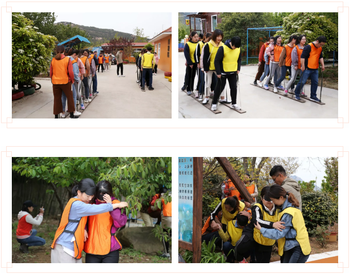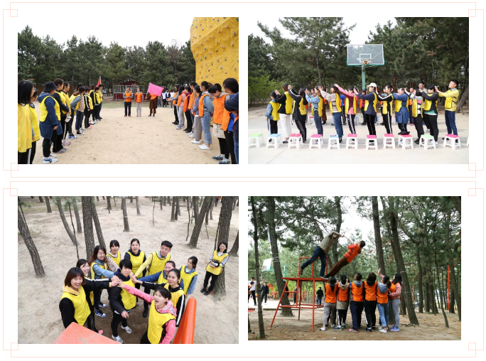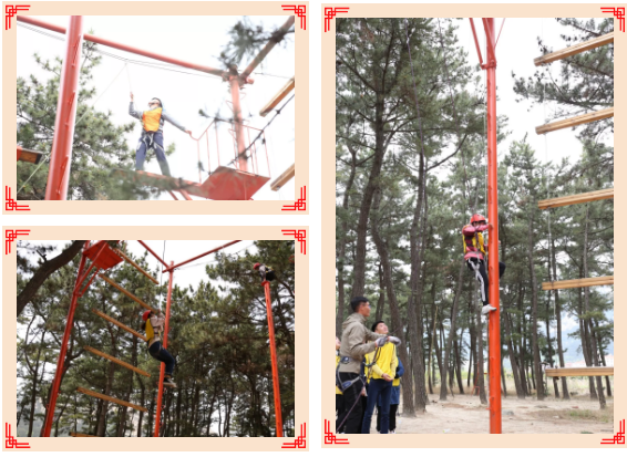 拓展训练中,分别从团队建设、信任背摔、高空断桥、有轨电车、风雨同舟、手语感恩六个拓展项目展开。团队建设中,全场队员随即分组,现场推选出队长、队秘、确定队名、口号,进行分组展示,消除陌生,帮助磨合,促使大家快速形成团队归属感;在信任背摔项目中,通过自我挑战,提高心理素质,迅速建立队员之间的相互信任;高空断桥中,队员克服心理压力,让队员感受到勇于进取的精神状态;有轨电车,通过良好的沟通协作能力,凝心聚力,实现团队的终极目标;风雨同舟项和手语感恩项目,是引导学员们要学会感恩惜福,增强队员对医院的归属感和向心力。