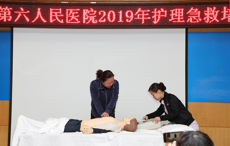 操作比赛的项目为:心肺复苏和电除颤。晋级参赛选手均以积极饱满的热情投入到备战中,自发利用休息时间加班加点,苦练基本功。在比赛现场,选手们准备充分,沉着应战,一声声指令简明清晰,一项项操作忙而不乱,一个个动作娴熟敏捷,一次次配合准确默契,既展示了规范的操作流程,又体现出了急救过程争分夺秒的精神,充分展现了六医护理人员良好的心理素质和扎实的急救技能。