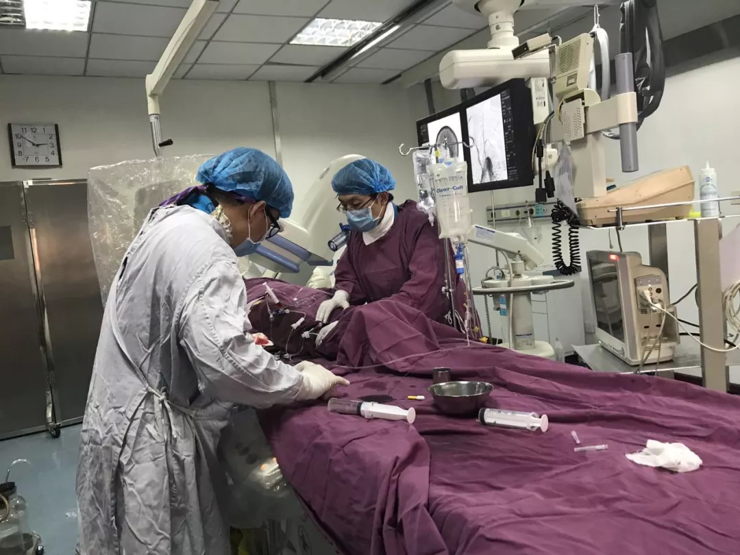 这样的场景对于张兴超来说,似乎已习以为常,因为这样的手术,一天24小时,随时都有可能发生。2017年7月的一天凌晨二点,一例突发昏迷的患者,被急诊收治并快速诊断为脑梗死,怀疑基底动脉闭塞引起,该病死亡率高达80%以上,征求患者家属意见后,遂给予动脉取栓治疗,术中患者基底动脉被成功开通,最终打赢这场硬仗的张兴超走出手术室,告诉家属患者目前病情平稳,长久焦急等待的家人们激动得泪流满面,患者女儿跪在地上感谢医生对他父亲的救命之恩。这例手术是西海岸新区第一例取栓手术,标志着西海岸新区脑卒中治疗迈上一个新台阶,和国际先进水平接轨!