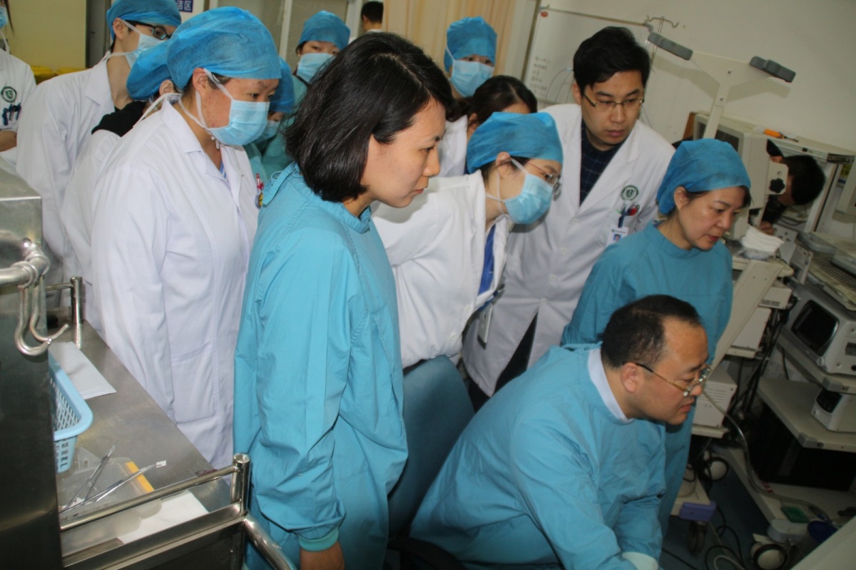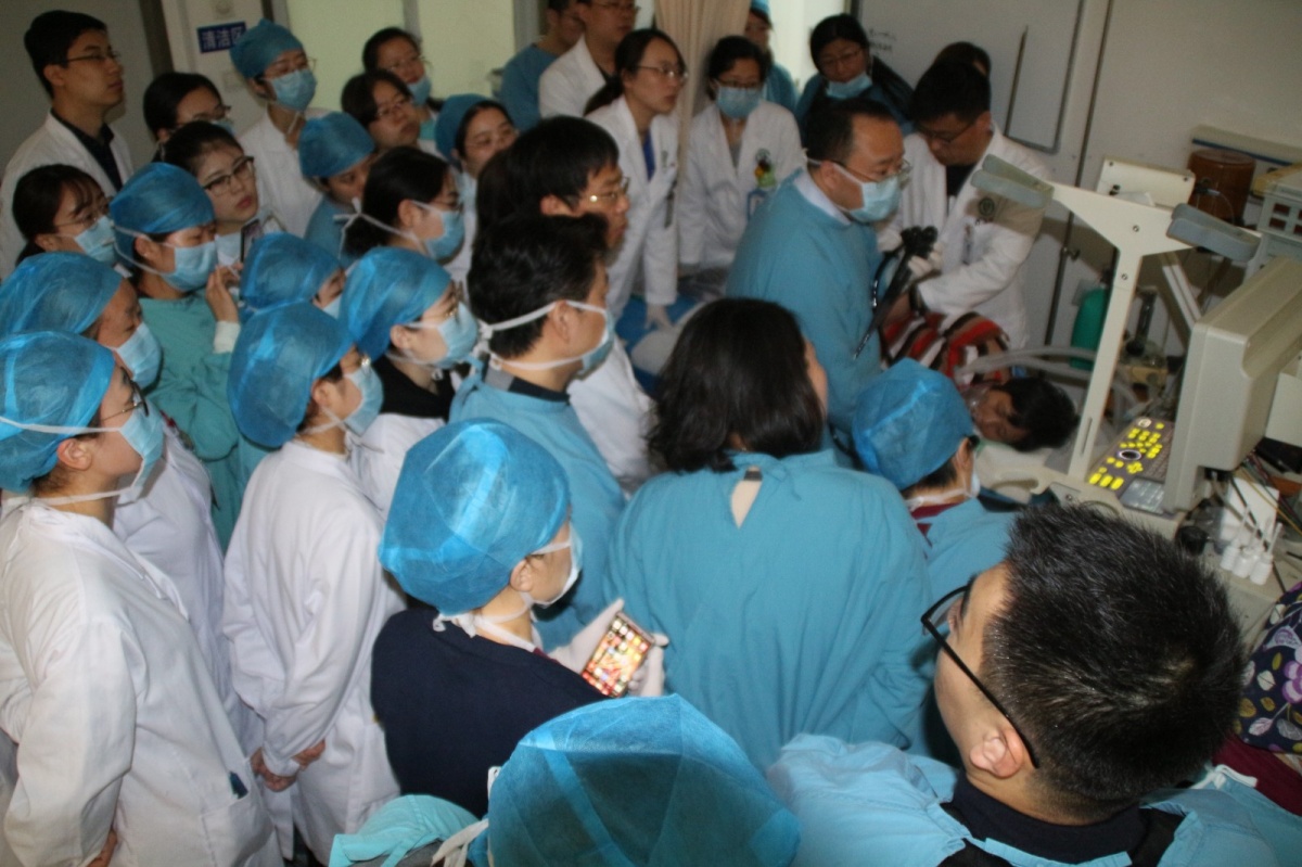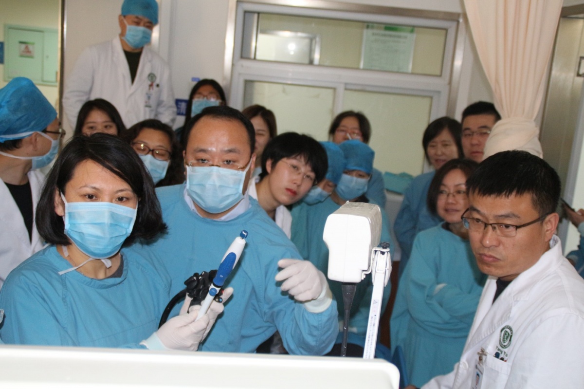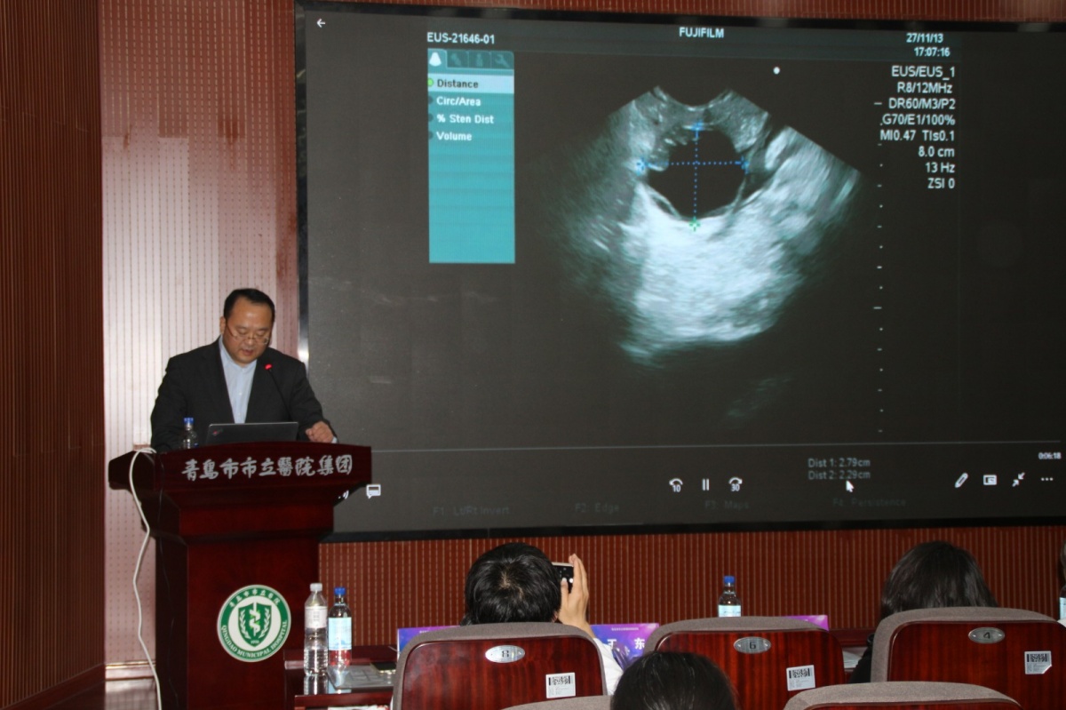 王东教授是国内著名消化内镜专家,尤其擅长超声内镜及ERCP的操作。为使EUS和ERCP的手把手带教,取得最佳演示效果,市立医院消化专业的四个科室通力合作,准备了胰腺恶性肿瘤、胆管巨大结石、胆总管占位、十二指肠粘膜下肿瘤、胃粘膜下肿瘤、直肠肿瘤等近10个消化内镜疑难病例。