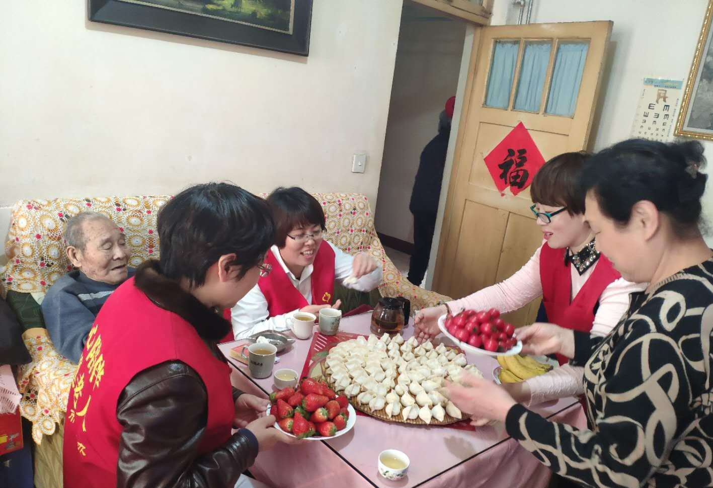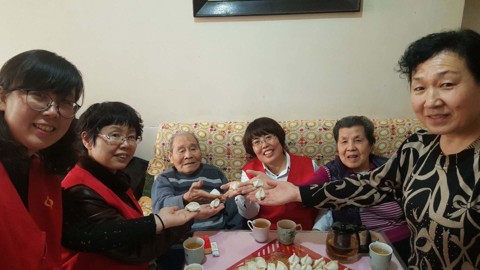 大爷看着我们带来的包饺子食材就高兴的说:“你们怎么知道我想吃这口儿啊,刚才和你大娘还说最近包饺子吃呐”。“我们是心有灵犀啊”,隋书记拉着大爷的手说,屋里一片欢声笑语。大家一边包饺子,一边与大爷大娘拉家常。一会儿,一盘盘热气腾腾的饺子端到了餐桌上。大爷一边吃着饺子一边意味深长的对我们说:“以前只有逢年过节才能吃上饺子,还见不着点肉,现在日子好了,想吃什么馅的就吃什么馅的,还有你们这些孝顺的孩子们陪着我们老两口,也知足咯”。