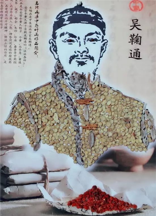 作品寓意:本幅画是安宫牛黄丸创始人中医温病学家吴鞠通的画像。安宫牛黄丸的处方源自清朝吴鞠通的《温病条辨》,书中认为心者,君主之官,神明出焉,又以牛黄为主要故而得名安宫牛黄丸。组方:牛黄、麝香、水牛角、黄连、黄芩、栀子、雄黄、冰片、郁金、朱砂、珍珠等11味中药。此方作为热入心包、神昏窍闭危症的抢救药品,具有明显的开窍醒神、降温止惊的作用,是我国传统药品中最负盛名的急症用药。