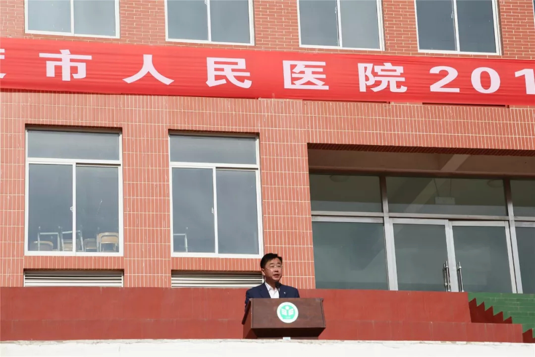 市人民医院党委副书记、院长李鹏致开幕词。李鹏院长代表医院党委对本届运动会的胜利召开表示热烈的祝贺!向精心准备本次运动会的全体运动员、裁判员、工作人员、大会志愿者表示亲切问候!向坚守在一线的医务人员表示崇高的敬意!向长期以来关心和支持医院发展建设的市卫生健康局和有关部门表示衷心感谢!